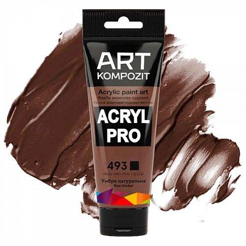 493 Умбра натуральна Acril PRO - коричнева акрилова фарба. Ступінь прозорості - покривна. Рівень світлостійкості - максимальний.